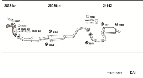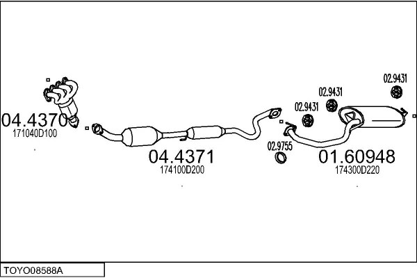 TOYOTA AVENSIS limuzína (_T25_) 1.6 VVT-i (ZZT250_, ZZT250R) - Výfukový systém - kompletní od 4/2003 do 11/2008, 1598 ccm, 81 kW, 110 hp, 3ZZ-FE, limuzína