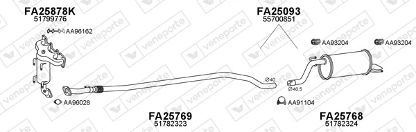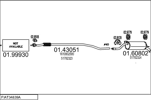 FIAT GRANDE PUNTO (199_) 1.2 - Výfukový systém - kompletní od 10/2005, 1242 ccm, 48 kW, 65 hp, 199 A4.000, Šikmá zadní část