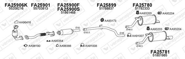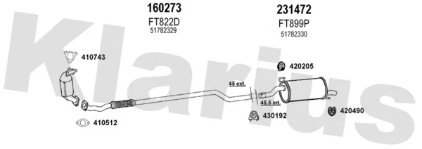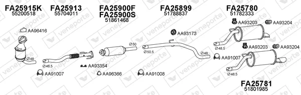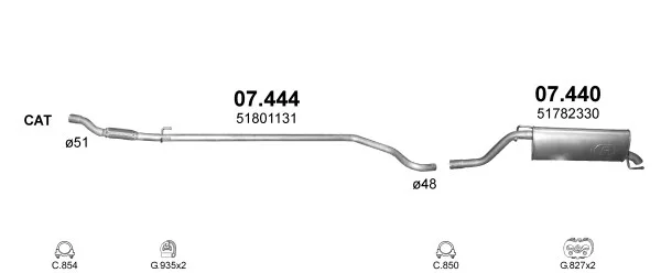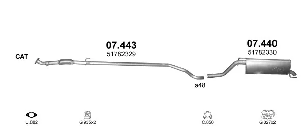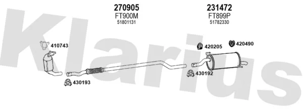 FIAT GRANDE PUNTO (199_) 1.3 D Multijet - Výfukový systém - kompletní od 10/2005 do 6/2013, 1248 ccm, 55 kW, 75 hp, 199 A2.000, 199 A9.000, Šikmá zadní část