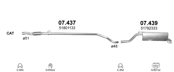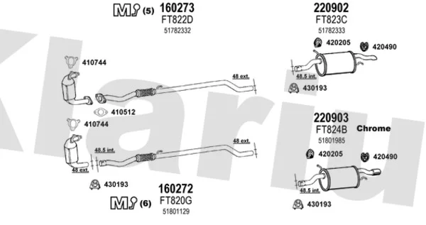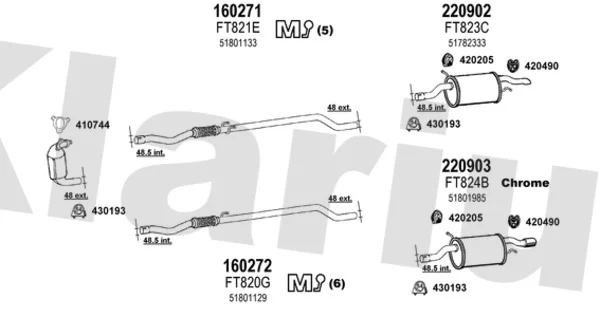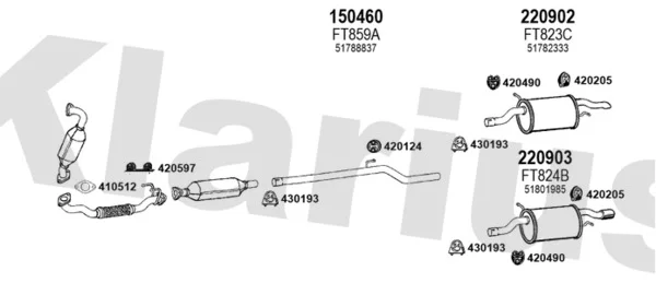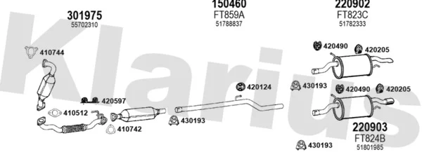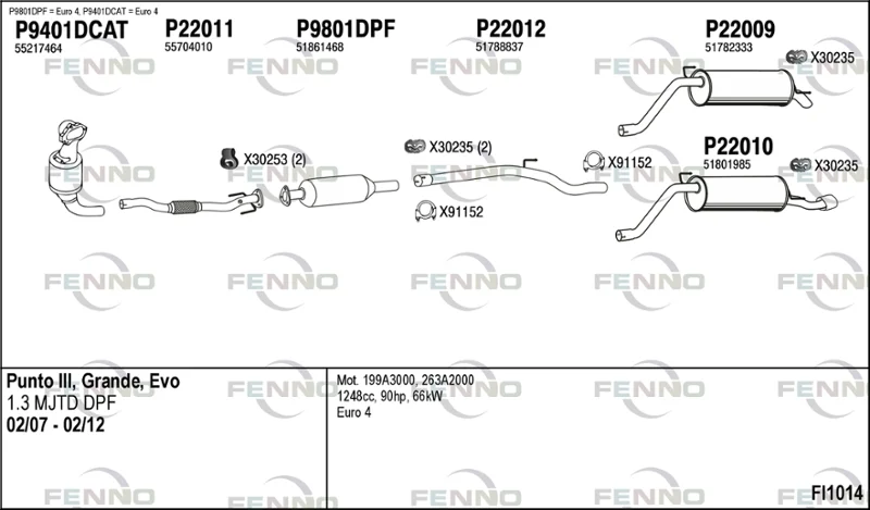 FIAT GRANDE PUNTO (199_) 1.3 D Multijet (199.AXD11, 199.AXD1A, 199.AXD1B,... - Výfukový systém - kompletní od 10/2005 do 12/2010, 1248 ccm, 66 kW, 90 hp, 199 A3.000, Šikmá zadní část