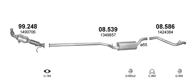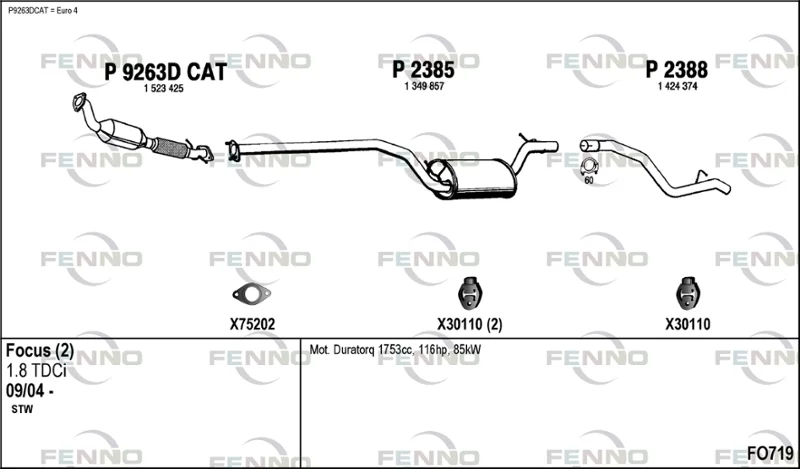 FORD FOCUS II Turnier (DA_, FFS, DS) 1.8 TDCi - Výfukový systém - kompletní od 7/2004 do 9/2012, 1753 ccm, 85 kW, 115 hp, KKDA, kombi