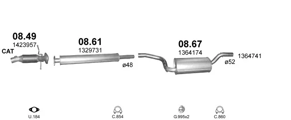 FORD FOCUS II limuzína (DB_, FCH, DH) 2.0 - Výfukový systém - kompletní od 4/2005 do 7/2011, 1999 ccm, 107 kW, 145 hp, AODA, AODB, AODE, SYDA, limuzína