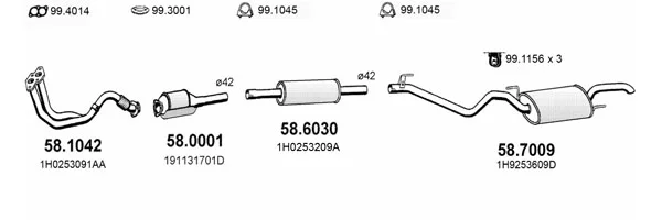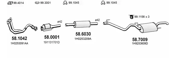 VW GOLF III Variant (1H5) 1.4 - Výfukový systém - kompletní od 7/1993 do 4/1999, 1390 ccm, 44 kW, 60 hp, ABD, AEX, APQ, kombi