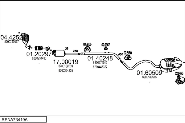 RENAULT SCÉNIC II (JM0/1_) 1.9 dCi (JM15) - Výfukový systém - kompletní od 5/2005 do 11/2008, 1870 ccm, 81 kW, 110 hp, F9Q 804, velkoprostorová limuzína