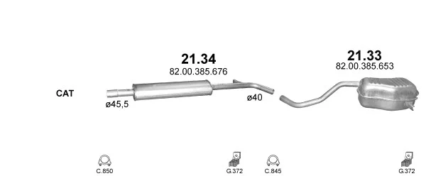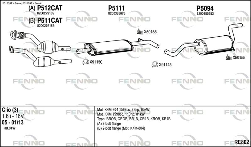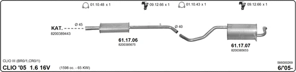 RENAULT CLIO III (BR0/1, CR0/1) 1.6 16V (BR09, BR0T, CR09, CR0T) - Výfukový systém - kompletní od 6/2005 do 10/2007, 1598 ccm, 65 kW, 88 hp, K4M 804, Šikmá zadní část