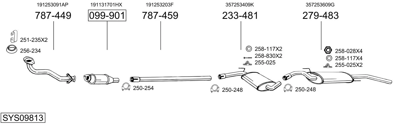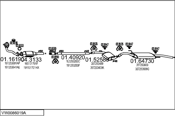 VW PASSAT B3/B4 Variant (3A5, 35I) 1.6 - Výfukový systém - kompletní od 4/1988 do 7/1989, 1595 ccm, 53 kW, 72 hp, RF, kombi
