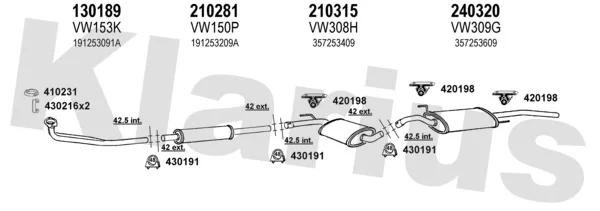 VW PASSAT B3/B4 Variant (3A5, 35I) 1.6 - Výfukový systém - kompletní od 4/1988 do 7/1991, 1595 ccm, 55 kW, 75 hp, 1F, ABN, EZ, kombi