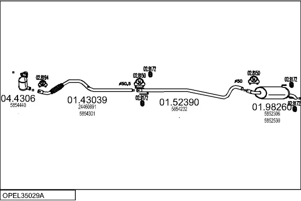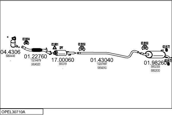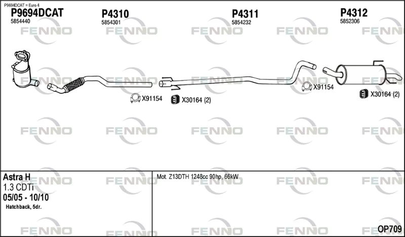 OPEL ASTRA H (A04) 1.3 CDTI (L48) - Výfukový systém - kompletní od 8/2005 do 10/2010, 1248 ccm, 66 kW, 90 hp, Z 13 DTH, Šikmá zadní část
