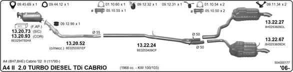 AUDI A4 B7 Kabriolet (8HE) 2.0 TDI - Výfukový systém - kompletní od 1/2006 do 3/2009, 1968 ccm, 103 kW, 140 hp, BPW, Kabriolet