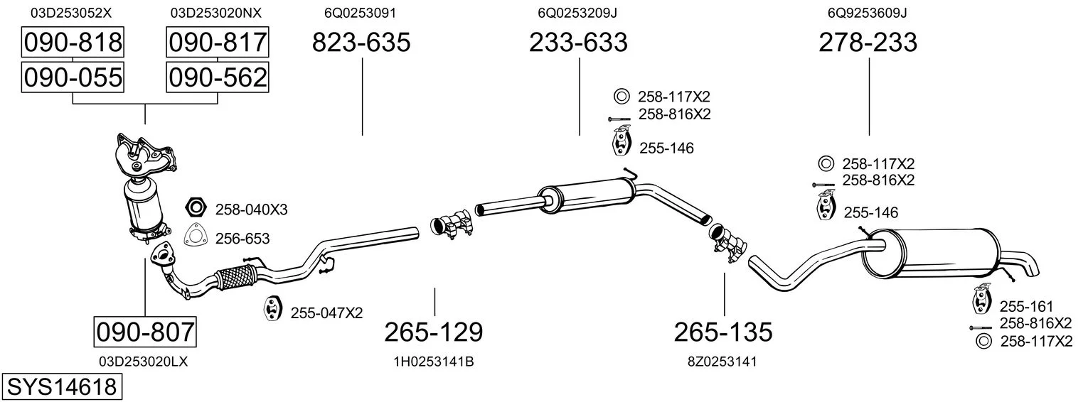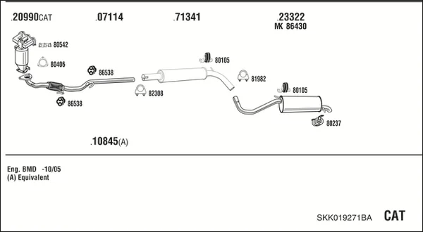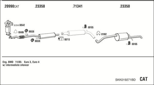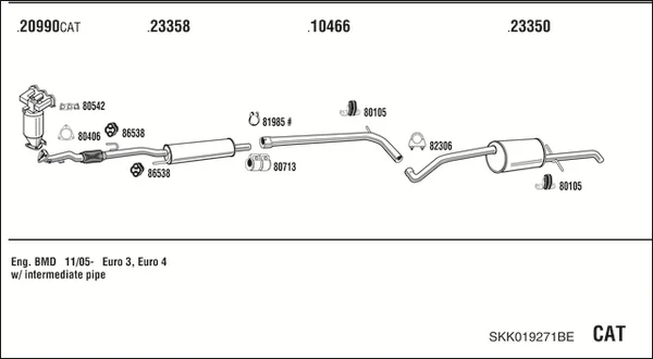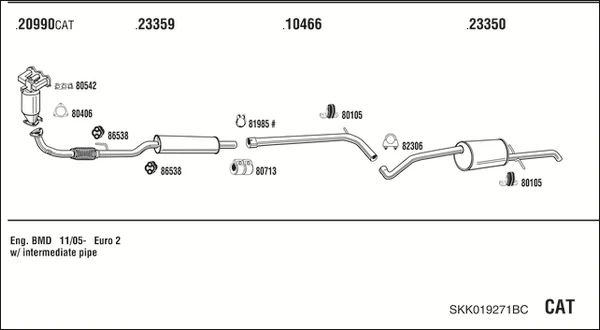 SKODA FABIA I Praktik (6Y5) 1.2 - Výfukový systém - kompletní od 7/2001 do 12/2007, 1198 ccm, 40 kW, 54 hp, AWY, BMD, karoserie/kombi