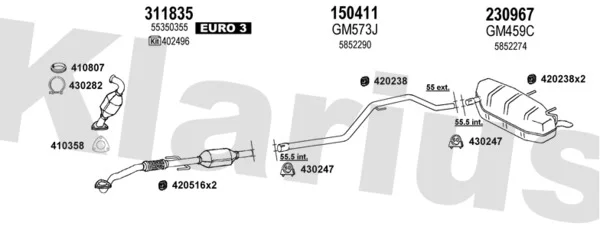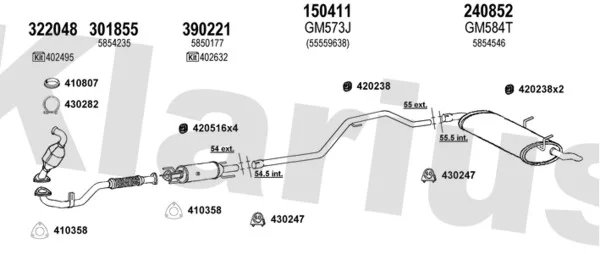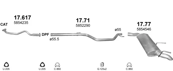 OPEL VECTRA C kombi (Z02) 1.9 CDTI (F35) - Výfukový systém - kompletní od 6/2005 do 8/2008, 1910 ccm, 74 kW, 100 hp, Z 19 DTL, kombi
