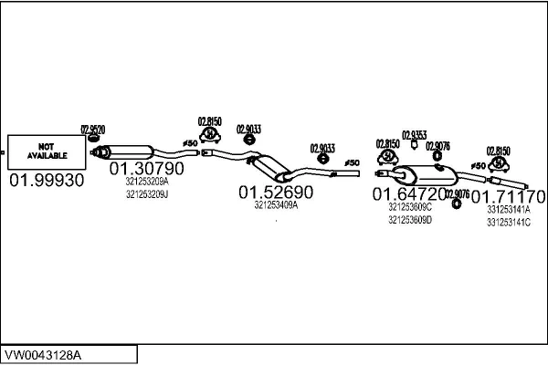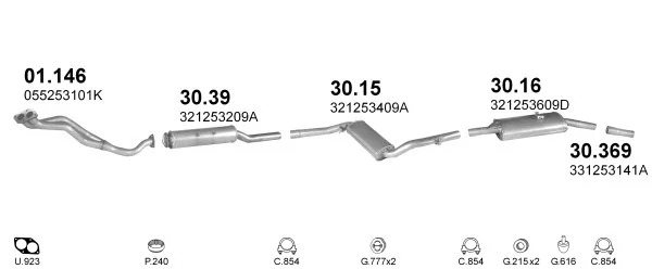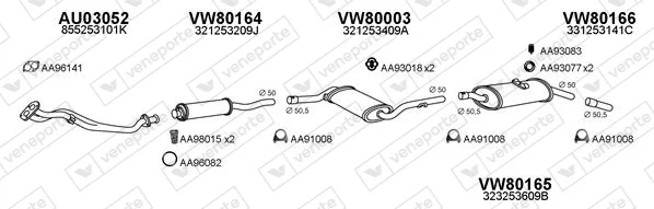 VW PASSAT B2 Variant (33B) 1.9 - Výfukový systém - kompletní od 1/1981 do 7/1983, 1921 ccm, 85 kW, 115 hp, WN, kombi