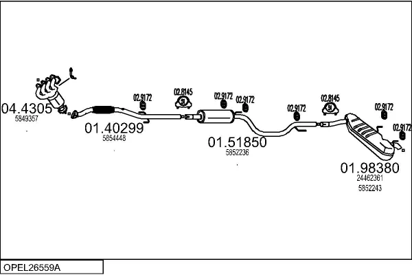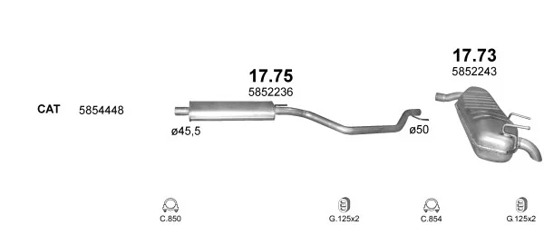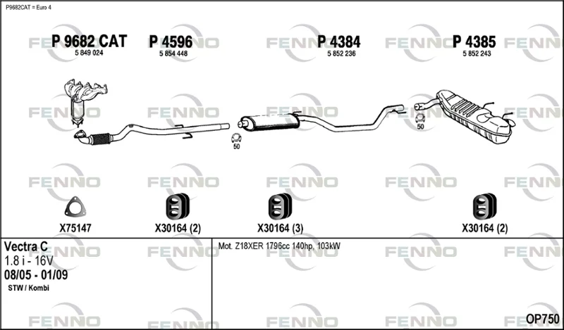 OPEL VECTRA C kombi (Z02) 1.8 (F35) - Výfukový systém - kompletní od 8/2005 do 8/2008, 1796 ccm, 103 kW, 140 hp, Z 18 XER, kombi