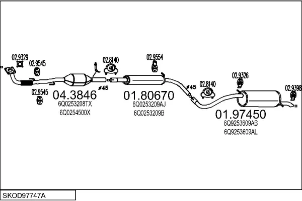 SKODA FABIA I Praktik (6Y5) 1.4 - Výfukový systém - kompletní od 7/2001 do 5/2003, 1397 ccm, 50 kW, 68 hp, AME, AQW, ATZ, karoserie/kombi