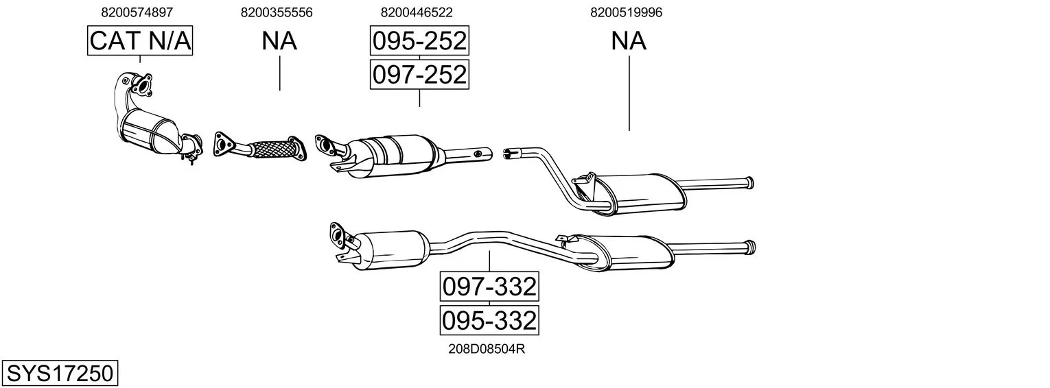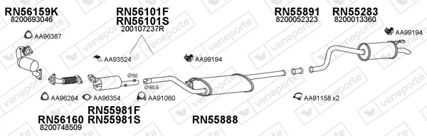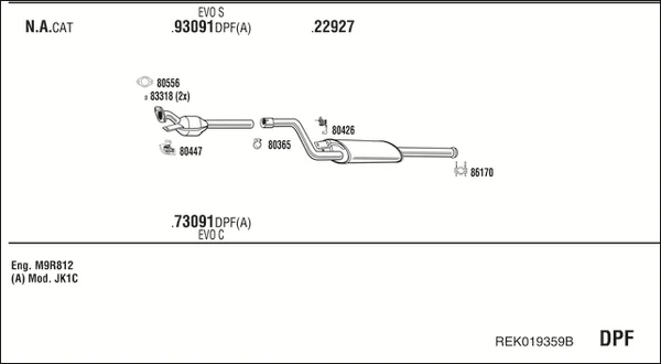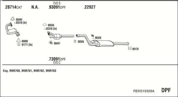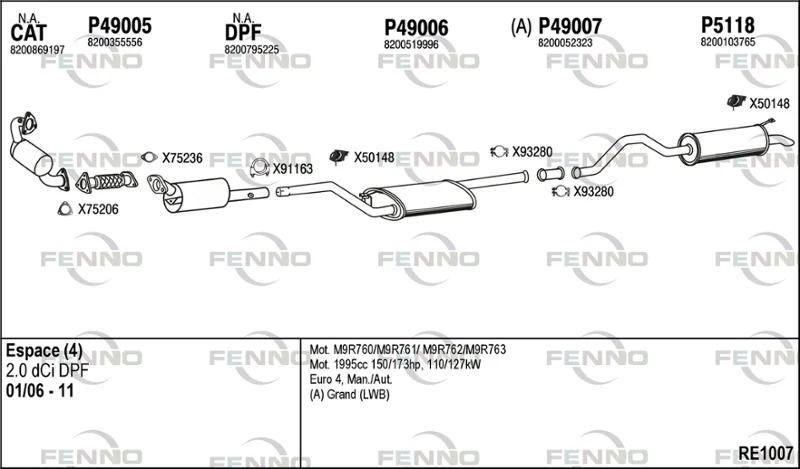 RENAULT ESPACE IV (JK0/1_) 2.0 dCi (JK03, JK04, JK1C, JK1G, JK1J, JK1K) - Výfukový systém - kompletní od 1/2006, 1995 ccm, 127 kW, 173 hp, M9R 760, M9R 761, M9R 762, M9R 763, M9R 812, M9R 815, M9R 859, velkoprostorová limuzína