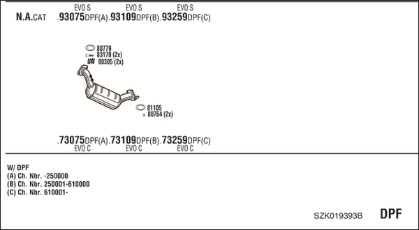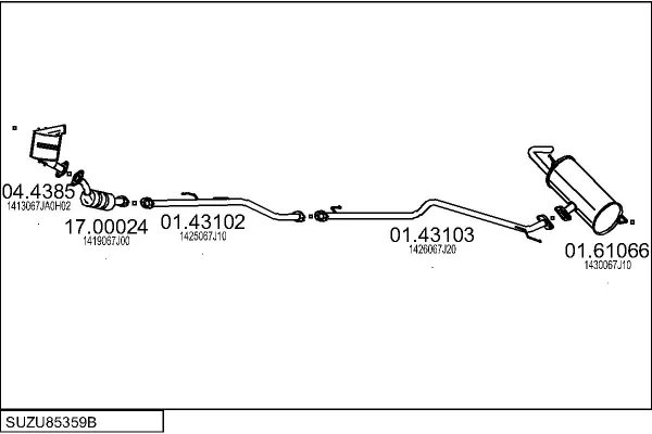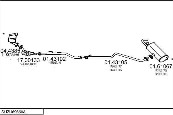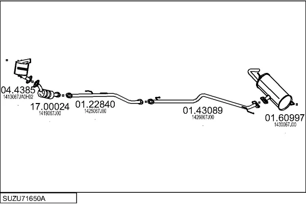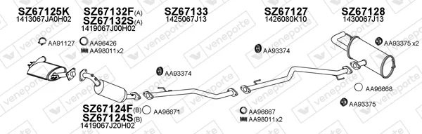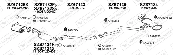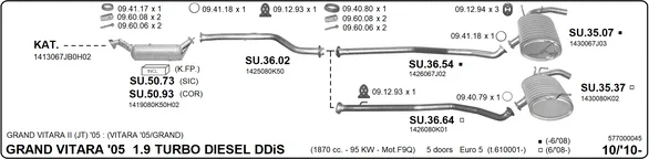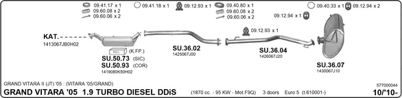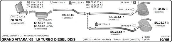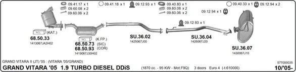 SUZUKI GRAND VITARA II (JT, TE, TD) 1.9 DDiS pohon na 4 kola (JT419, TD44, JB419WD, JB419XD,... - Výfukový systém - kompletní od 10/2005 do 2/2015, 1870 ccm, 95 kW, 129 hp, F9QB, F9QC, uzavřený terénní vůz