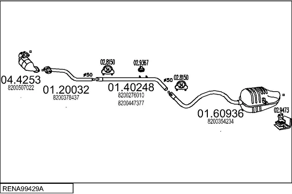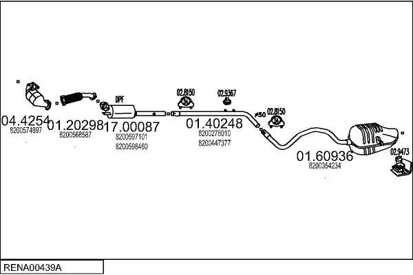 RENAULT MEGANE II Coupé-Cabriolet (EM0/1_) 2.0 dCi - Výfukový systém - kompletní od 9/2005 do 3/2009, 1995 ccm, 110 kW, 150 hp, M9R 700, M9R 722, Kabriolet
