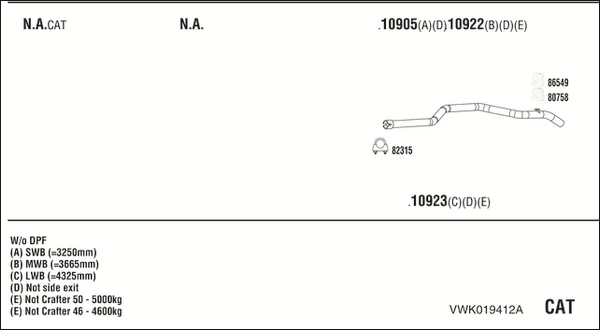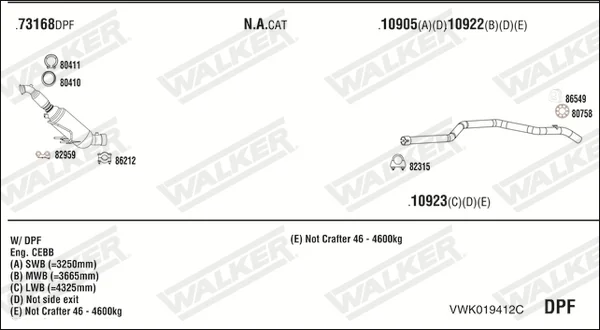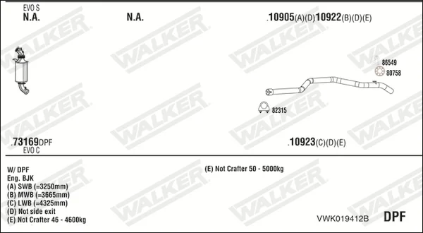 VW CRAFTER 30-50 Krabice (2E_) 2.5 TDI - Výfukový systém - kompletní od 4/2006 do 5/2013, 2461 ccm, 80 kW, 109 hp, BJK, CEBB, Krabice