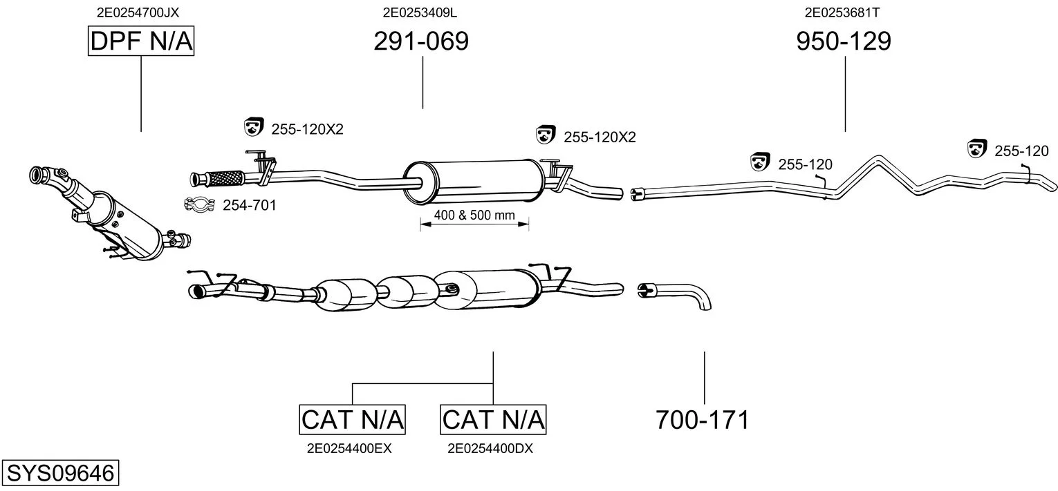 VW CRAFTER 30-50 Krabice (2E_) 2.5 TDI - Výfukový systém - kompletní od 4/2006 do 7/2011, 2461 ccm, 120 kW, 163 hp, BJM, CECB, Krabice