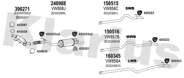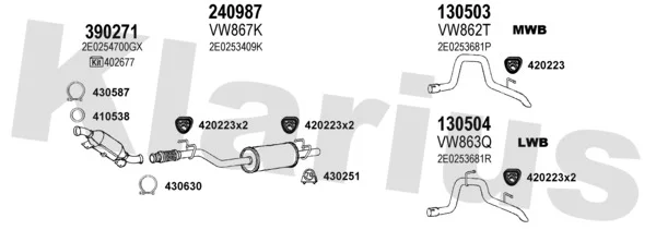 VW CRAFTER 30-50 valník/podvozek (2F_) 2.5 TDI - Výfukový systém - kompletní od 4/2006 do 5/2013, 2461 ccm, 100 kW, 136 hp, BJL, CECA, valník/podvozek