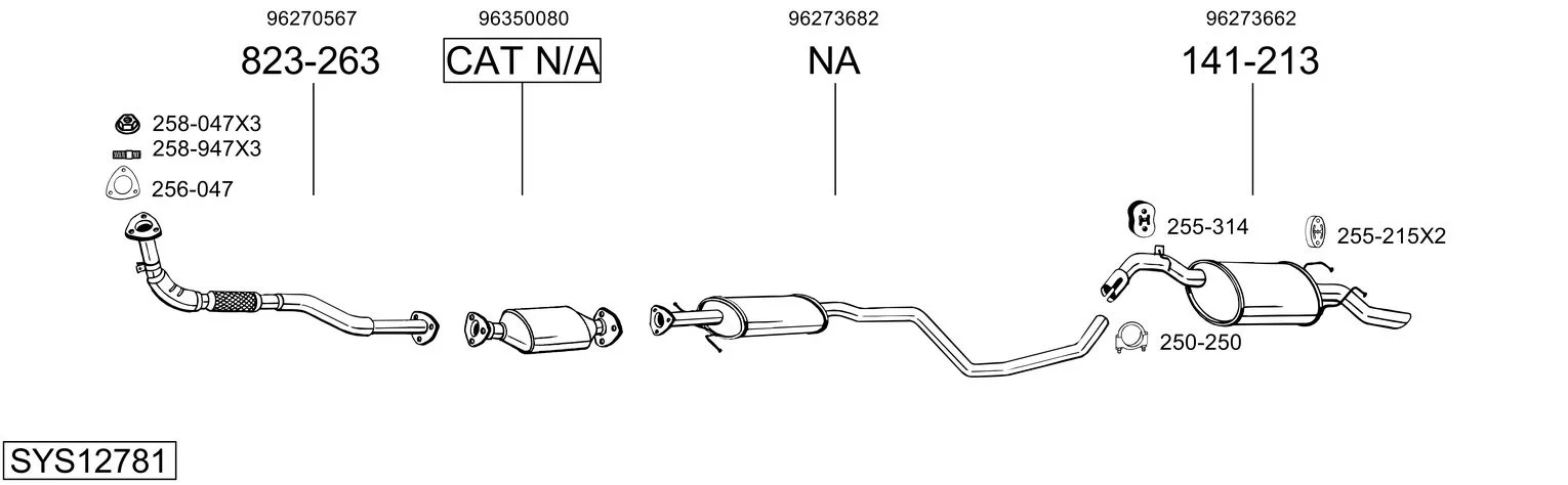DAEWOO NUBIRA Wagon (J100) 1.6 16V - Výfukový systém - kompletní od 12/2000, 1598 ccm, 76 kW, 103 hp, A16DMS, kombi
