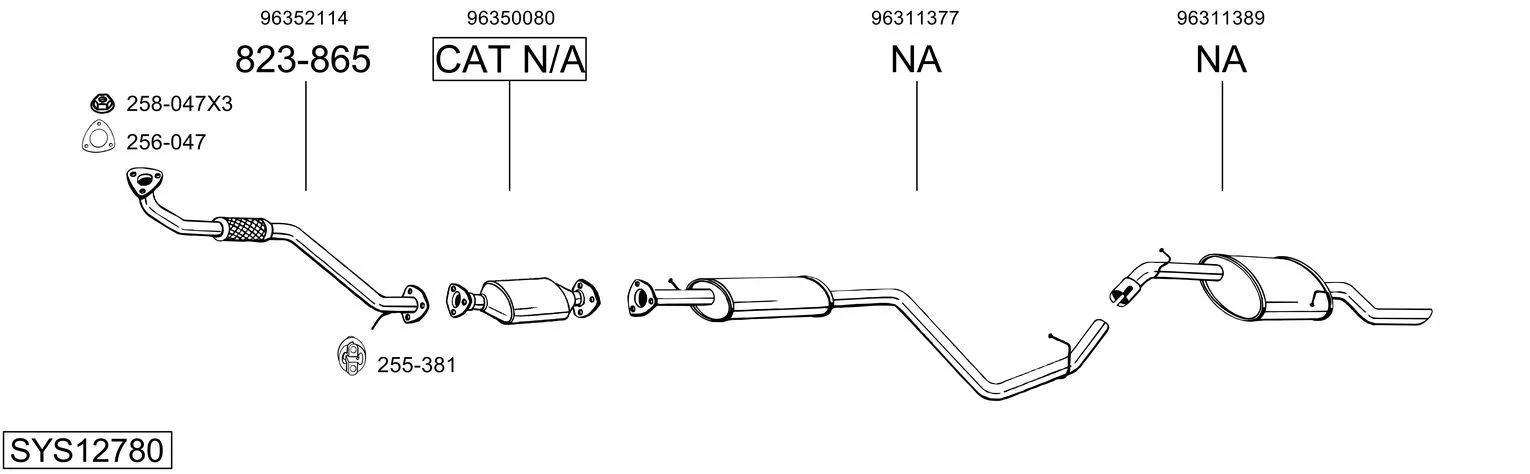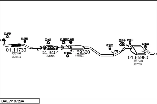 DAEWOO NUBIRA Wagon (J100) 1.6 16V - Výfukový systém - kompletní od 6/1997, 1598 ccm, 66 kW, 90 hp, A16DMS, kombi