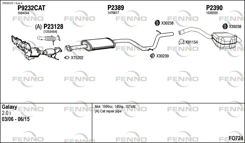 FORD GALAXY II (WA6) 2.0 - Výfukový systém - kompletní od 5/2006 do 6/2015, 1999 ccm, 107 kW, 145 hp, AOWA, AOWB, TBWA, TBWB, velkoprostorová limuzína