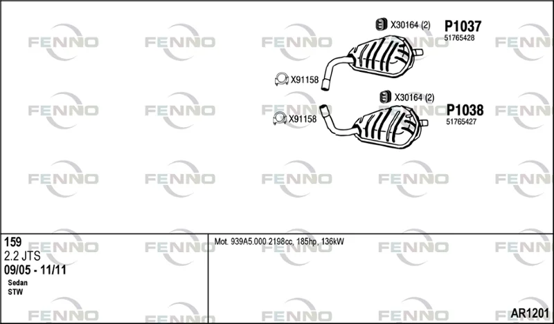 ALFA ROMEO 159 Sportwagon (939_) 2.2 JTS (939BXB1B, 939BXB11) - Výfukový systém - kompletní