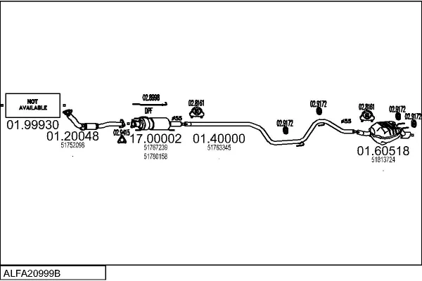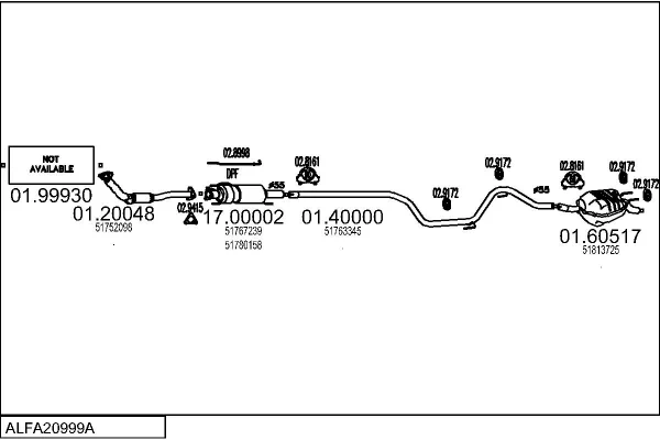 ALFA ROMEO 159 Sportwagon (939_) 1.9 JTDM 8V (939BXE1B) - Výfukový systém - kompletní od 3/2006 do 11/2011, 1910 ccm, 88 kW, 120 hp, 939 A1.000, kombi