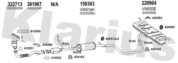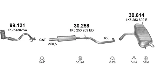 VW GOLF PLUS V (5M1, 521) 1.4 16V - Výfukový systém - kompletní od 5/2006 do 12/2013, 1390 ccm, 59 kW, 80 hp, BUD, CGGA, Šikmá zadní část