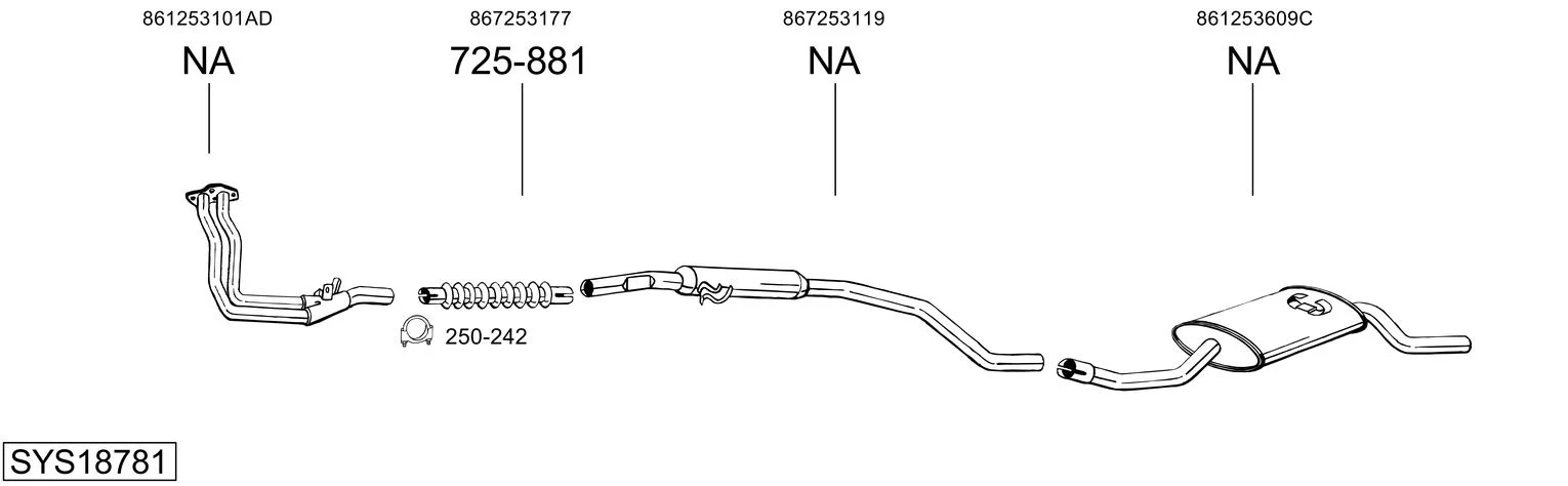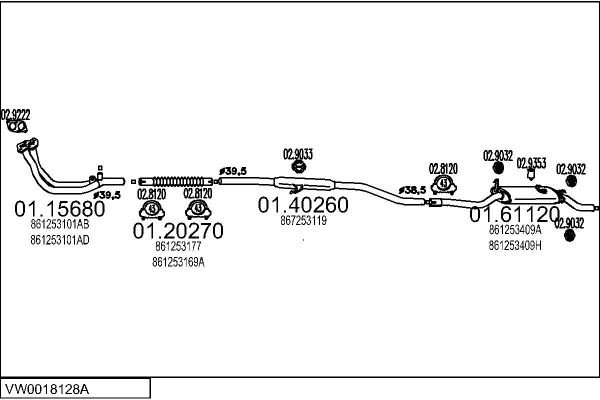 VW POLO kupé (86C, 80) 1.1 - Výfukový systém - kompletní od 10/1981 do 7/1983, 1093 ccm, 37 kW, 50 hp, HB, kupé