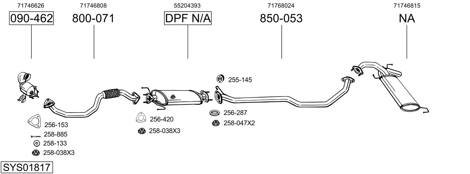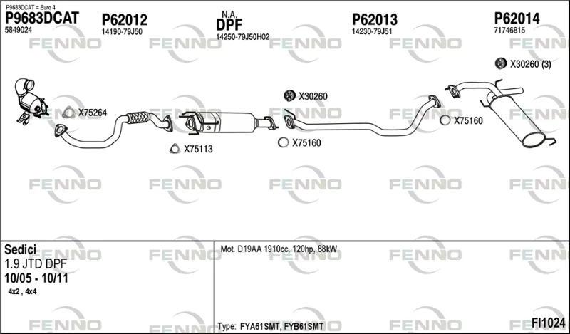 FIAT SEDICI (189_) 1.9 D Multijet 4x4 - Výfukový systém - kompletní od 6/2006 do 10/2011, 1910 ccm, 88 kW, 120 hp, D19AA, SUV
