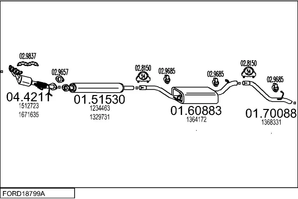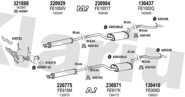 FORD FOCUS II Kabriolet 2.0 - Výfukový systém - kompletní od 10/2006 do 9/2010, 1999 ccm, 107 kW, 145 hp, AODA, AODB, AODE, SYDA, Kabriolet
