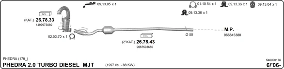 LANCIA PHEDRA (179_) 2.0 JTD (179.AXH1B, 179.BXH1B) - Výfukový systém - kompletní od 6/2006 do 11/2010, 1997 ccm, 88 kW, 120 hp, RHK (DW10UTED4), velkoprostorová limuzína