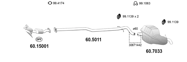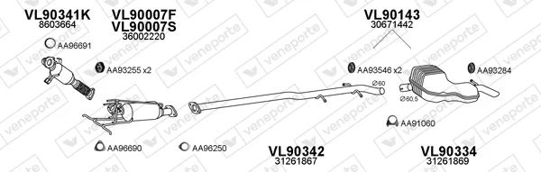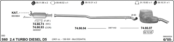 VOLVO S60 I (384) D5 - Výfukový systém - kompletní od 3/2005 do 4/2010, 2401 ccm, 136 kW, 185 hp, D 5244 T4, limuzína