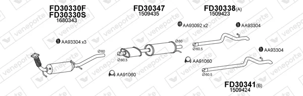 FORD TRANSIT autobus (FD_ _, FB_ _, FS_ _, FZ_ _, FC_ _) 2.2 TDCi - Výfukový systém - kompletní od 4/2006 do 8/2014, 2198 ccm, 63 kW, 85 hp, P8FA, P8FB, autobus