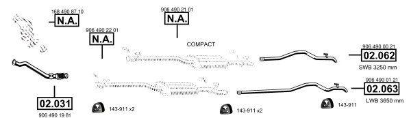 MERCEDES-BENZ SPRINTER 3-t valník/podvozek (B906) 209 CDI (906.111, 906.113, 906.211, 906.213) - Výfukový systém - kompletní od 6/2006 do 12/2009, 2148 ccm, 65 kW, 88 hp, OM 646.984, valník/podvozek