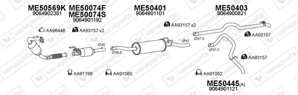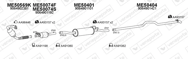 MERCEDES-BENZ SPRINTER 3-t valník/podvozek (B906) 218 CDI (906.111, 906.113, 906.211, 906.213) - Výfukový systém - kompletní od 6/2006 do 12/2009, 2987 ccm, 135 kW, 184 hp, OM 642.896, OM 642.992, OM 642.993, valník/podvozek