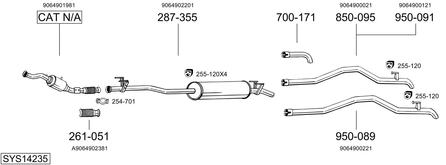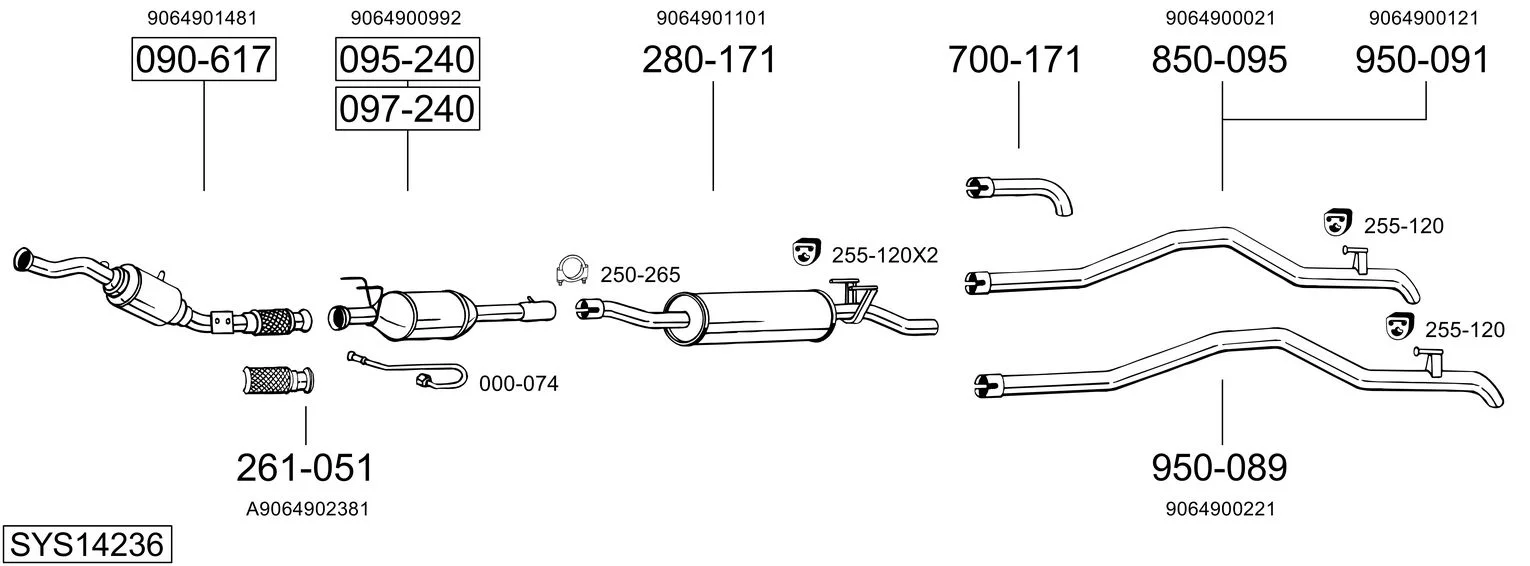 MERCEDES-BENZ SPRINTER 3,5-t autobus (B906) 315 CDI (906.731, 906.733, 906.735) - Výfukový systém - kompletní od 6/2006 do 12/2009, 2148 ccm, 110 kW, 150 hp, OM 646.986, OM 646.989, OM 646.990, autobus