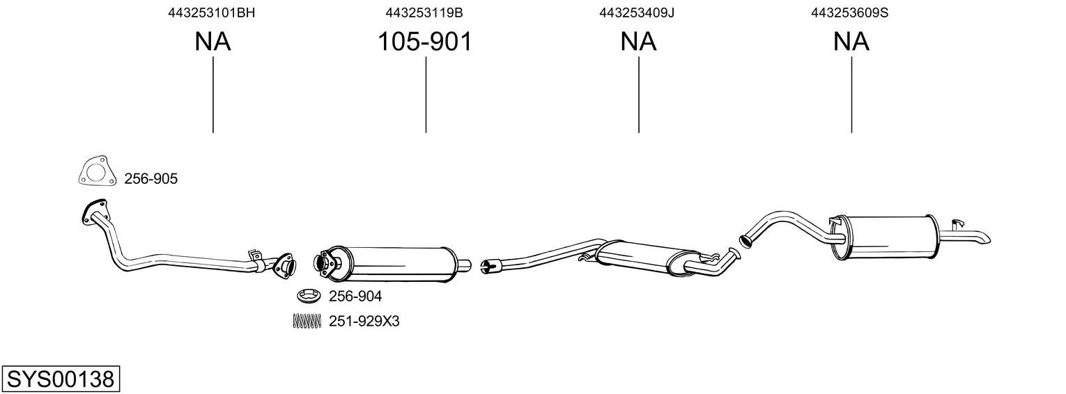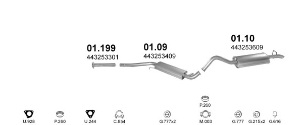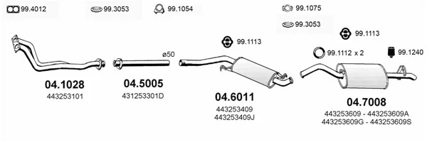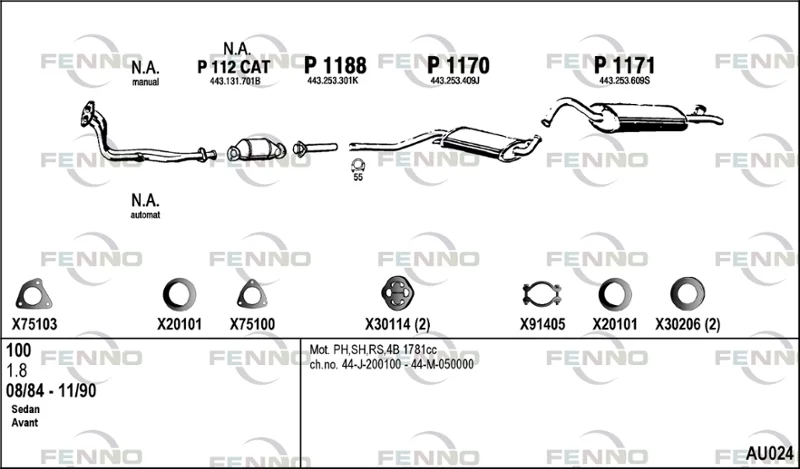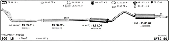 AUDI 100 C3 limuzína (443, 444) 1.8 - Výfukový systém - kompletní od 8/1982 do 12/1987, 1781 ccm, 55 kW, 75 hp, DR, RS, limuzína