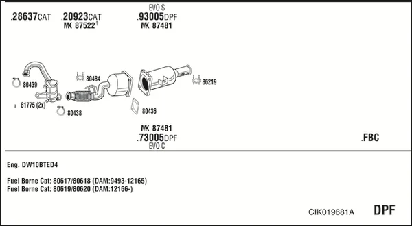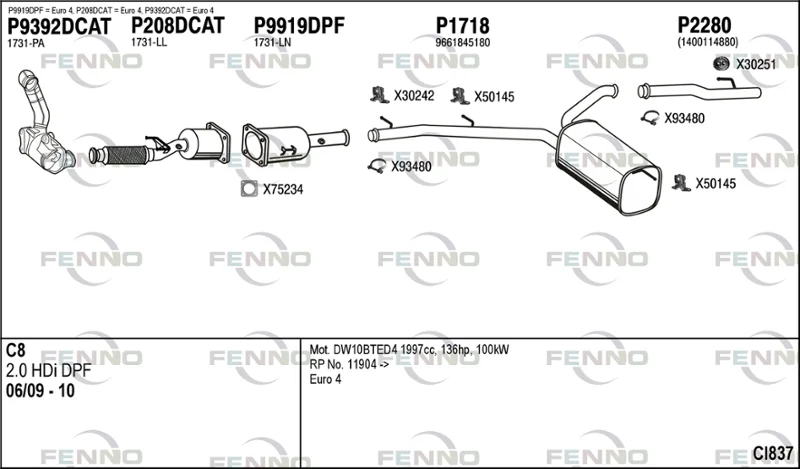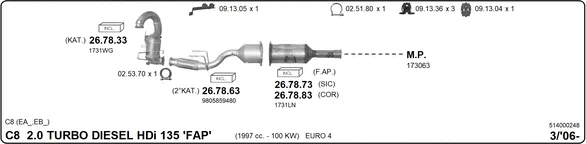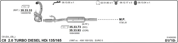 CITROËN C8 (EA_, EB_) 2.0 HDi 135 - Výfukový systém - kompletní od 3/2006, 1997 ccm, 100 kW, 136 hp, RHD (DW10CB), RHD (DW10CTED4), RHR (DW10BTED4), velkoprostorová limuzína