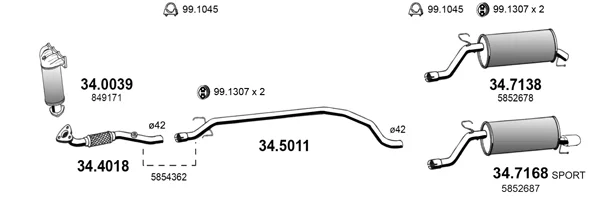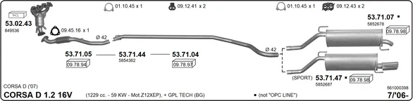 OPEL CORSA D (S07) 1.2 (L08, L68) - Výfukový systém - kompletní od 7/2006 do 8/2014, 1229 ccm, 59 kW, 80 hp, Z 12 XEP, Šikmá zadní část