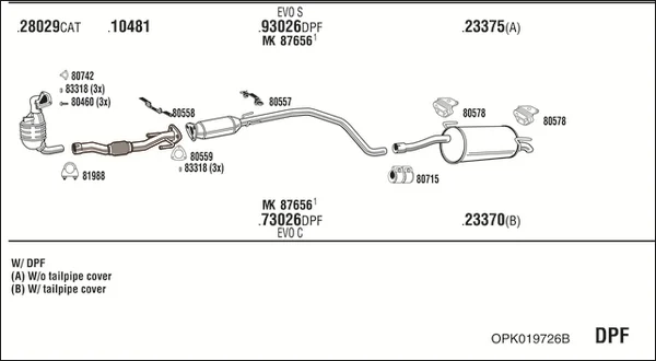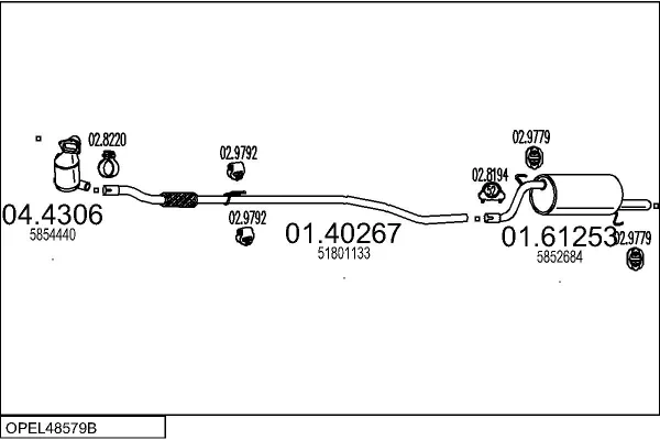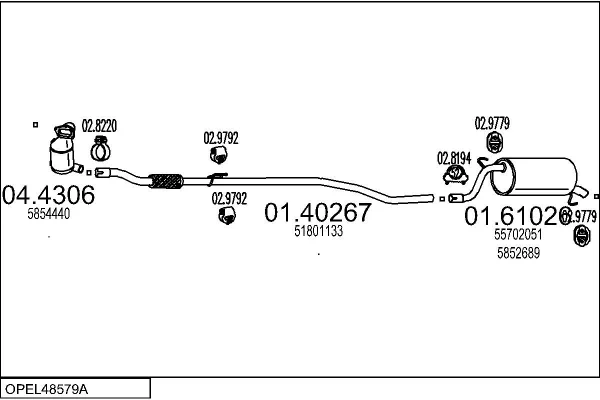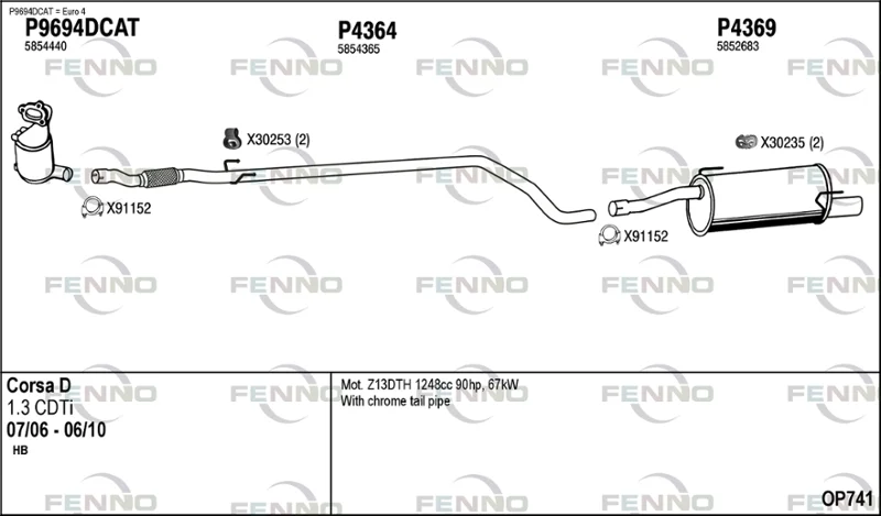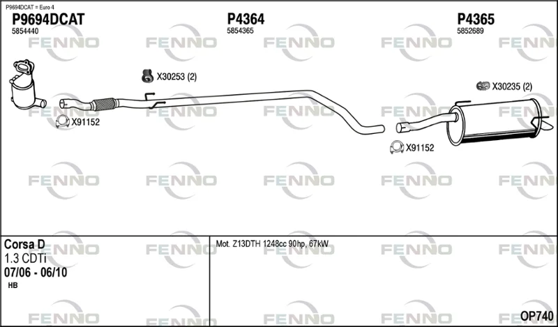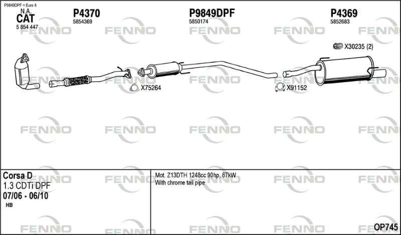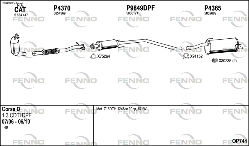 OPEL CORSA D (S07) 1.3 CDTI (L08, L68) - Výfukový systém - kompletní od 7/2006 do 6/2011, 1248 ccm, 66 kW, 90 hp, Z 13 DTH, Šikmá zadní část