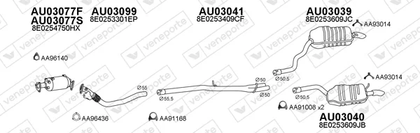AUDI A4 B7 Avant (8ED) 2.0 TDI - Výfukový systém - kompletní od 6/2006 do 6/2008, 1968 ccm, 125 kW, 170 hp, BRD, kombi
