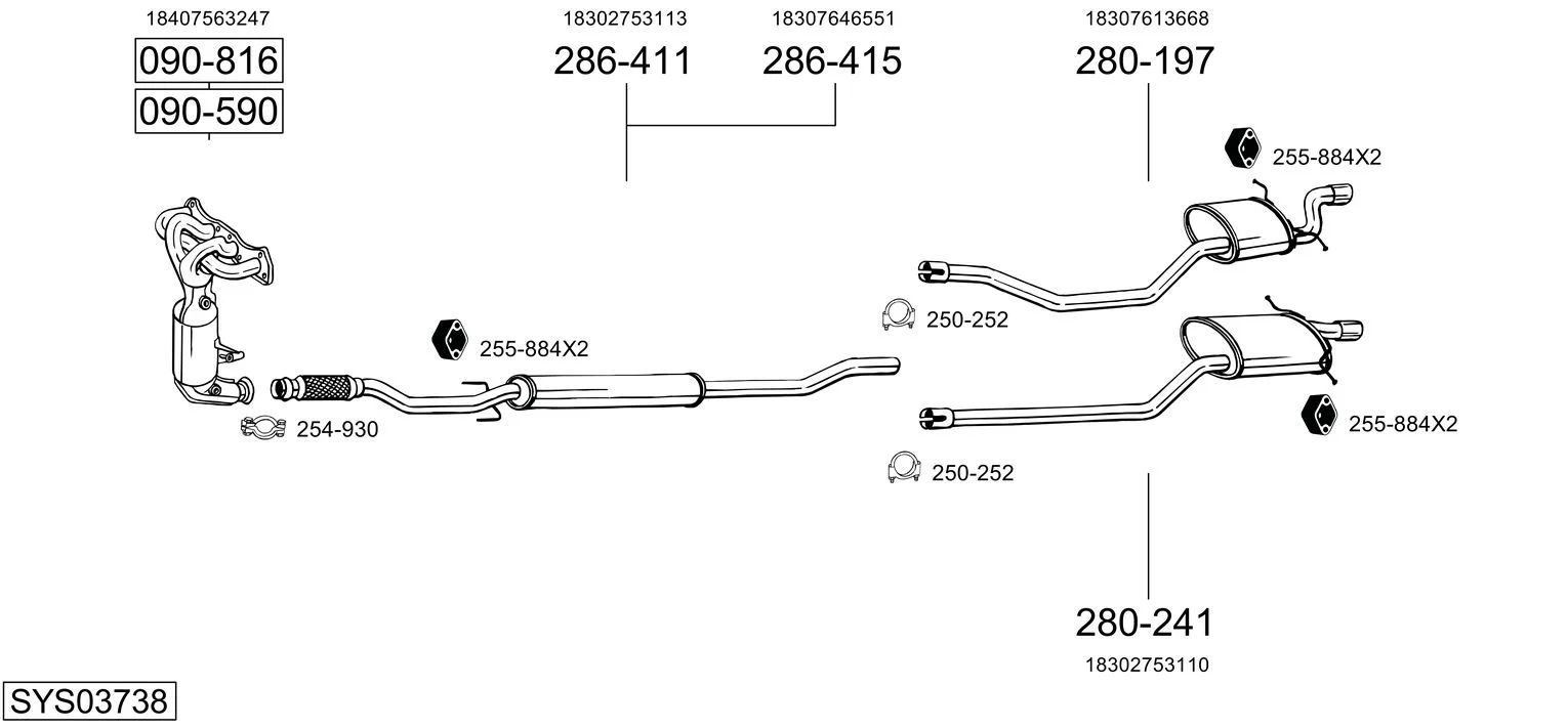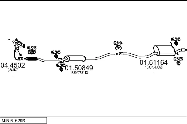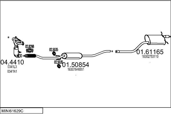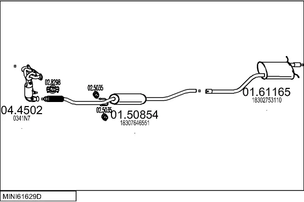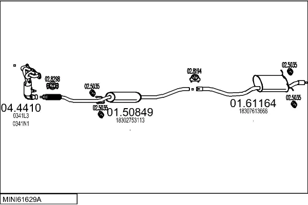 MINI MINI (R56) Cooper - Výfukový systém - kompletní od 10/2006 do 2/2012, 1598 ccm, 88 kW, 120 hp, N12 B16 A, N16 B16 A, Šikmá zadní část