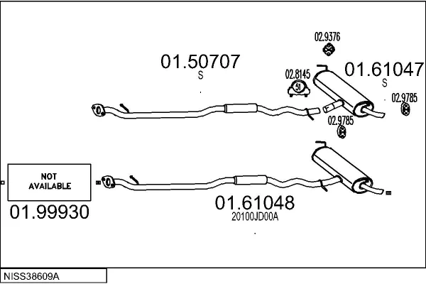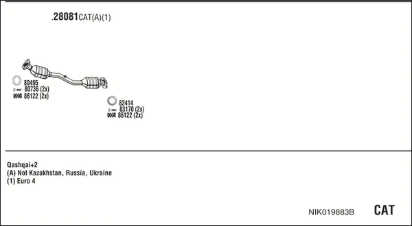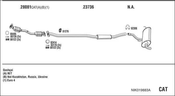 NISSAN QASHQAI / QASHQAI +2 I (J10, NJ10, JJ10E) 1.6 - Výfukový systém - kompletní od 2/2007 do 12/2013, 1598 ccm, 84 kW, 114 hp, HR16DE, SUV