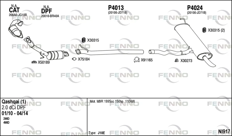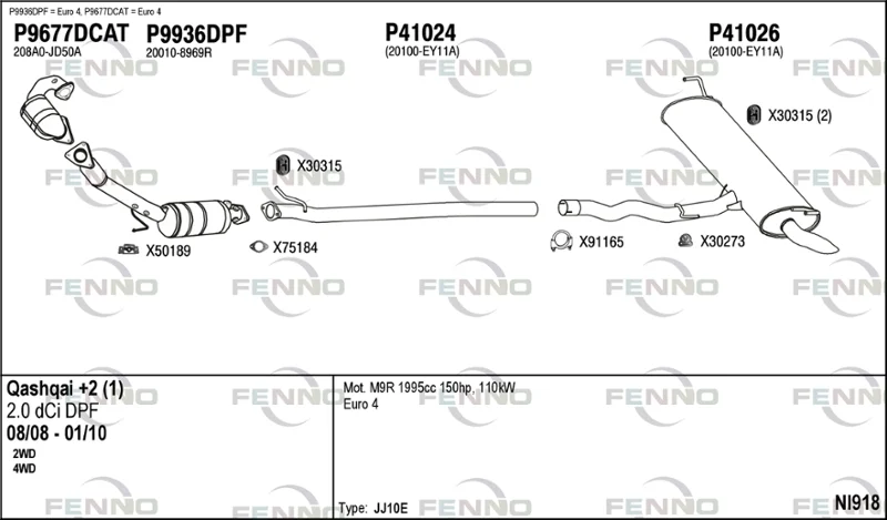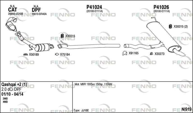 NISSAN QASHQAI / QASHQAI +2 I (J10, NJ10, JJ10E) 2.0 dCi - Výfukový systém - kompletní od 2/2007 do 12/2013, 1995 ccm, 110 kW, 150 hp, M1D, M9R, SUV