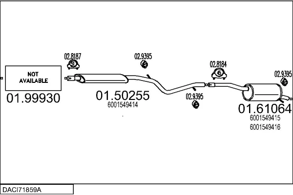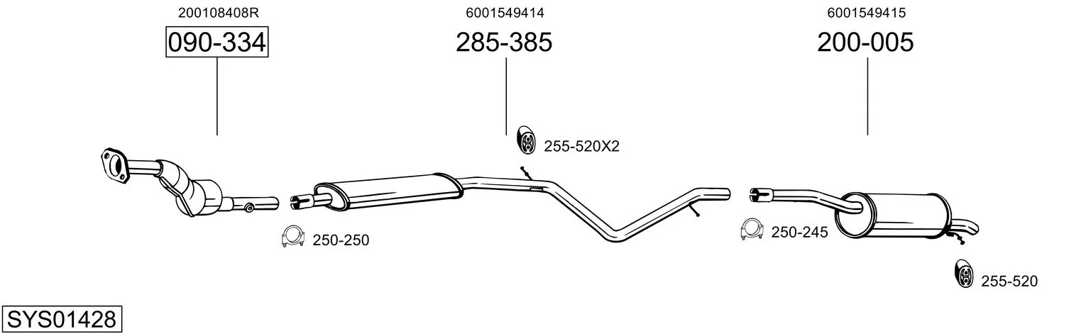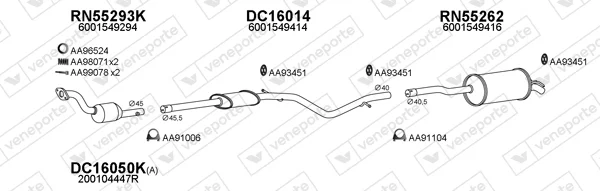 DACIA LOGAN MCV (KS_) 1.6 16V (KS0L, KS0M, KS0P, KS1S) - Výfukový systém - kompletní od 2/2007, 1598 ccm, 77 kW, 105 hp, K4M 690, K4M 696, K4M 697, kombi