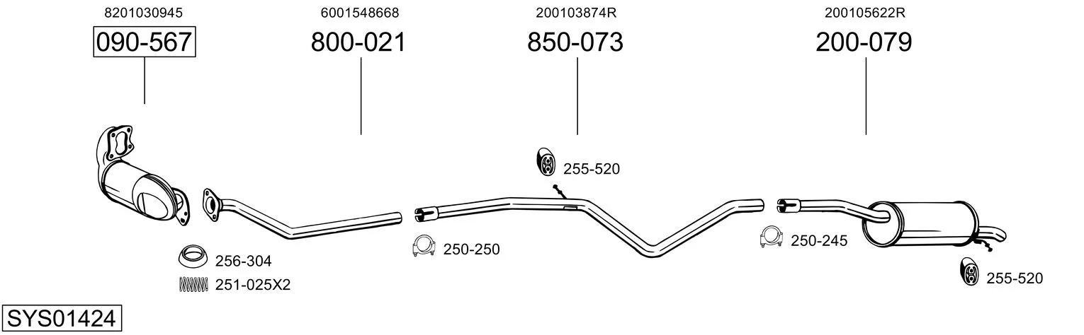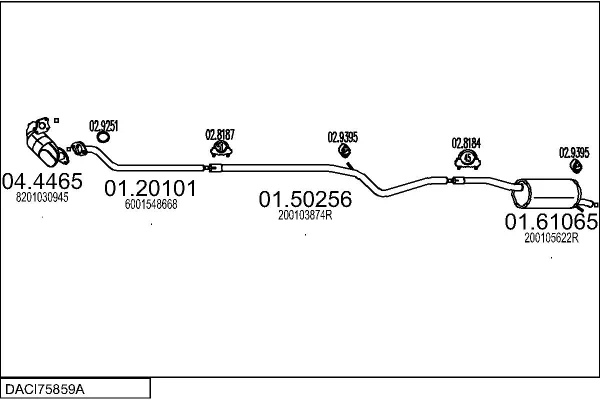 DACIA LOGAN MCV (KS_) 1.5 dCi (KS0K) - Výfukový systém - kompletní od 2/2007, 1461 ccm, 50 kW, 68 hp, K9K 792, kombi