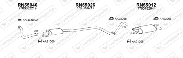 RENAULT SUPER 5 (B/C40_) 1.4 (B/C403) - Výfukový systém - kompletní od 10/1984 do 7/1989, 1397 ccm, 52 kW, 71 hp, C2J 700, C2J 780, C2J 781, C2J 788, C2J 789, C2J 798, Šikmá zadní část